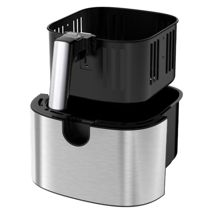 ظرفیت ۸ لیتری این مدل از نقاط قوت اصلی آن به شمار میرود و کاملاً مناسب خانوادههای چند نفره یا افرادی است که عادت به تهیه وعدههای حجیم دارند. فضای داخلی از جنس گالوانیزه ساخته شده که علاوه بر دوام مناسب، در انتقال بهتر حرارت نیز مؤثر است. ترکیب این ظرفیت با طراحی سبد آسانسوری تجربه استفاده را سادهتر کرده و امکان خارج کردن سبد بدون تماس دست با بخشهای داغ دستگاه را فراهم میسازد. سبد این سرخکن دارای پوشش نچسب بوده و در کنار قابلیت جداسازی، شست و شو و نگهداری آن را بسیار آسان میکند. به ویژه برای کاربرانی که به دنبال دستگاهی با تمیزکاری سریع هستند گزینه ای قابل توجه است.